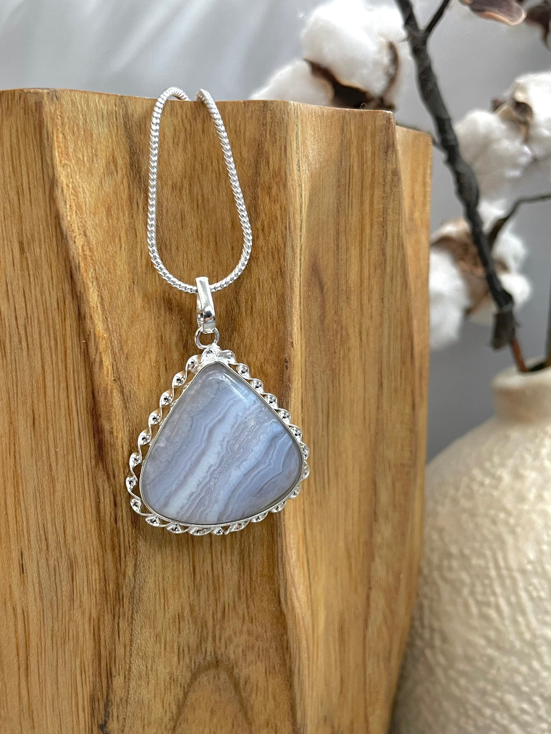 Communication, Peace & Emotional Stability Blue Lace Agate is a soothing crystal that enhances communication,...