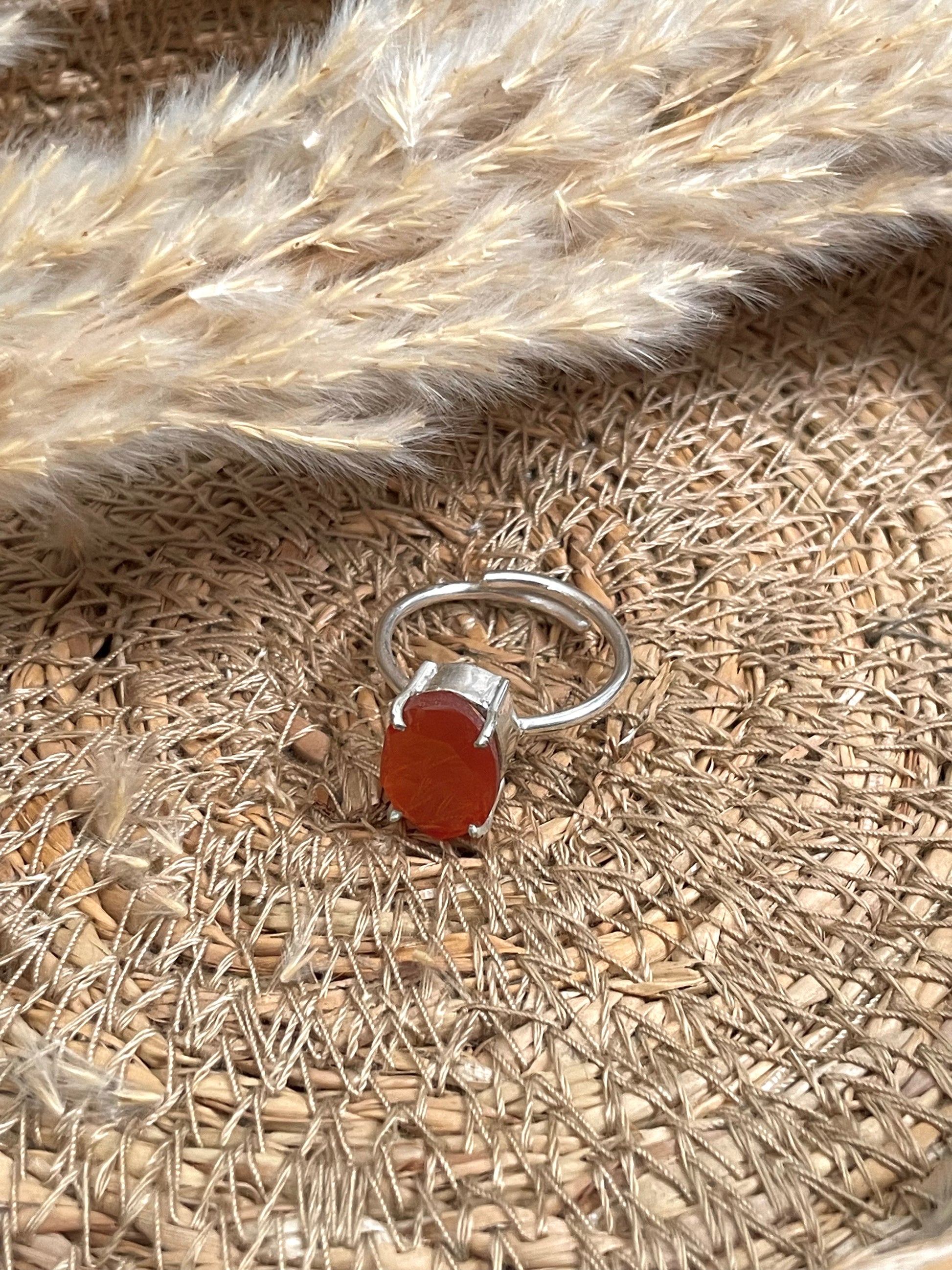 A fiery Red Carnelian Ring ignites passion, boosts confidence, and enhances motivation. It is a powerful stone for creativity, courage, and personal empowerment.