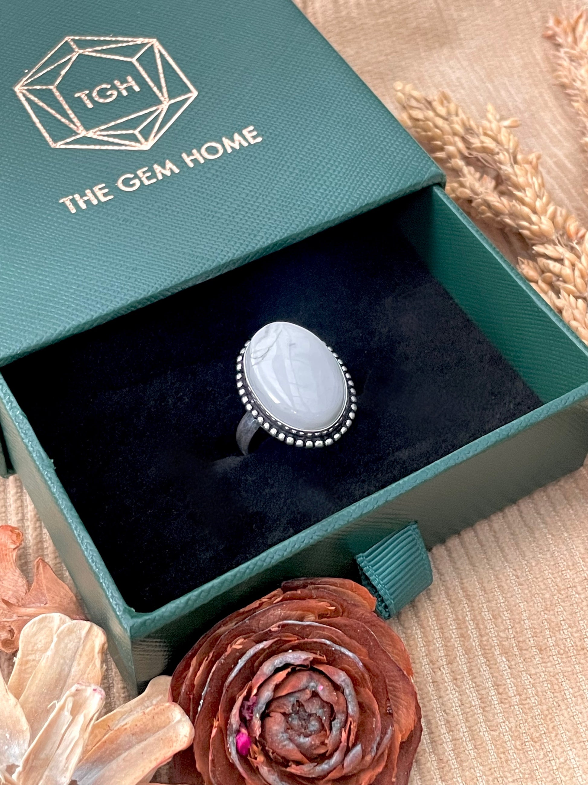 A mystical White Moonstone Ring enhances intuition, balances emotions, and symbolizes new beginnings. It promotes inner harmony and deep spiritual connection.